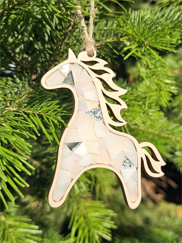 Лошадка белая 9 см. Набор мозаики из витражного стекла